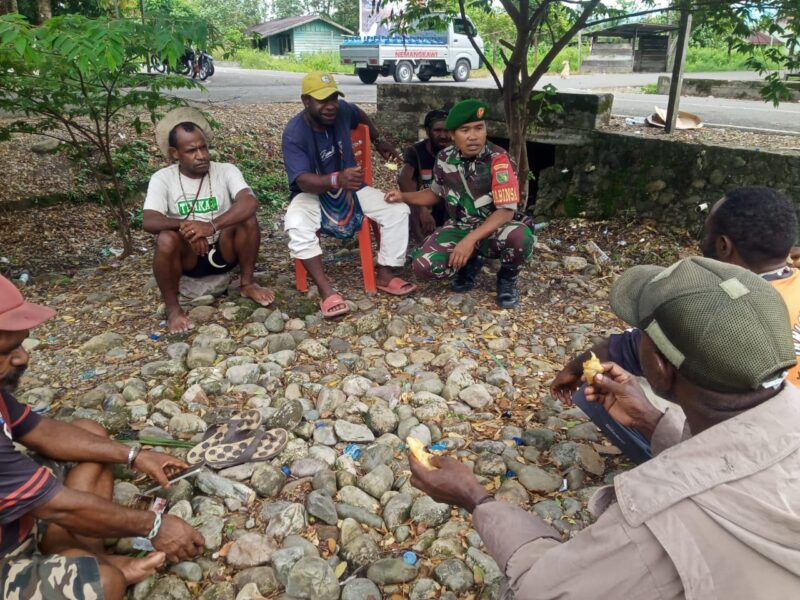 TIMIKA CARIBERITA – Babinsa Koramil 03/Kuala Kencana Kodim 1710/Mimika Sertu Abraham melaksanakan Komunikasi Sosial (Komsos) dengan warga binaan di Kampung Wangirja, Distrik Iwaka, Kab. Mimika. Jumat (01/11/2024).