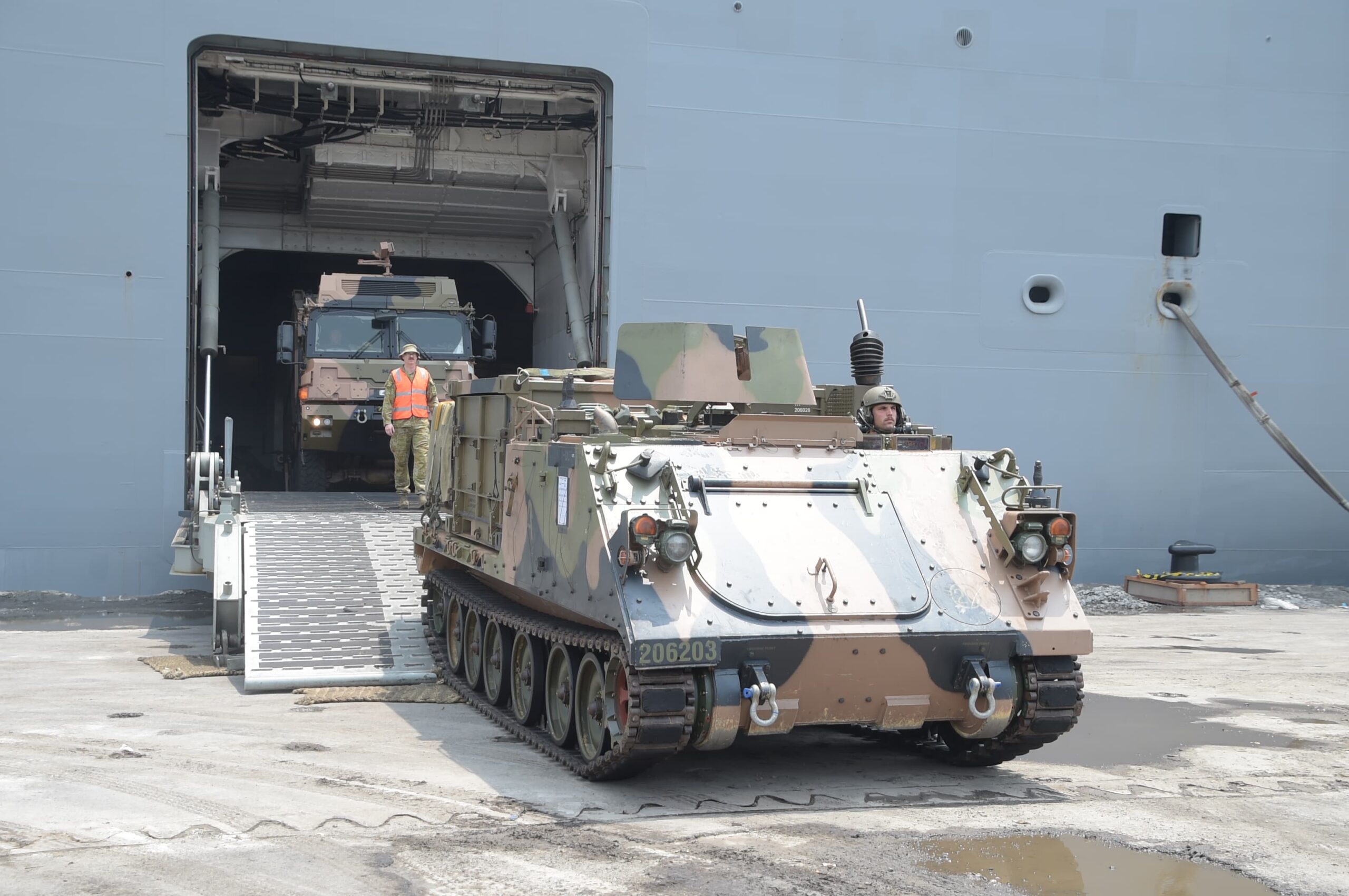 Menurut Komandan Pangkalan TNI AL (Lanal) Banyuwangi Letkol Laut (P) Hafidz, M.Tr. Opsla., selaku penanggungjawab di wilayah mengungkapkan bahwa pihaknya memastikan agar seluruh proses debarkasi Alutsista milik Australia berjalan lancar serta tiba di daerah latihan dalam keadaan aman.