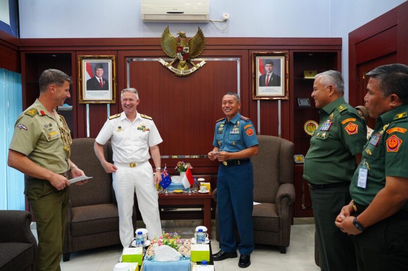 JAKARTA CARIBERITA – Pangkogabwilhan I (Panglima Komando Gabungan Wilayah Pertahanan) Laksda TNI Rachmad Jayadi didampingi Asintel Panglima TNI Mayor Jenderal TNI Rudi Rachmat Nugraha, S.I.P., M.Sc. menerima Courtessy Call (CC) Chairman Joints Operation (CJOPS) ADF (Australian Defence Force) Laksamana Madya Justin Jones, beserta staf bertempat di Mabes TNI, Cilangkap, Jakarta Timur, Kamis. (14/11/2024).