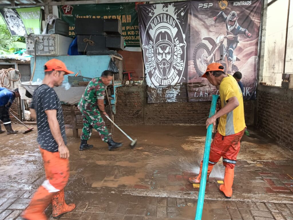 Kegiatan karya bakti yang dilakukan oleh Babinsa bersama warga, PPSU dan Dinas LH itu merupakan bagian dari tanggap darurat bencana alam yang merupakan salah satu tugas pokok TNI selain perang” ucap Danramil Mayor Kav Lucky Dibyanto.