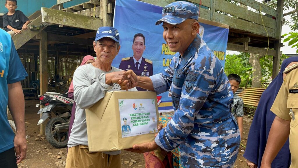 MAKASSAR CARIBERITA – Lanud Sultan Hasanuddin kembali memberikan bantuan berupa Sembako kepada masyarakat yang terdampak banjir di Kabupaten Maros. Komandan Lanud Sultan Hasanuddin, Marsma TNI Bonang Bayuaji G, S.E., M.M.,CHRMP., yang diwakili Kepala Dinas Potensi Dirgantara (Kadispotdirga) Lanud Sultan Hasanuddin Kolonel Pas I Komang Dony Ariyasa Wirayudha memberikan bantuan secara langsung kepada masyarakat korban banjir di Kabupaten Maros, Rabu (1/1/2025).