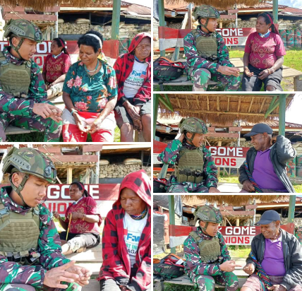 “Kami sangat bersyukur dan berterima kasih kepada TNI dari Pos Gome yang telah peduli terhadap kesehatan kami,” ungkap salah satu warga mama Yance