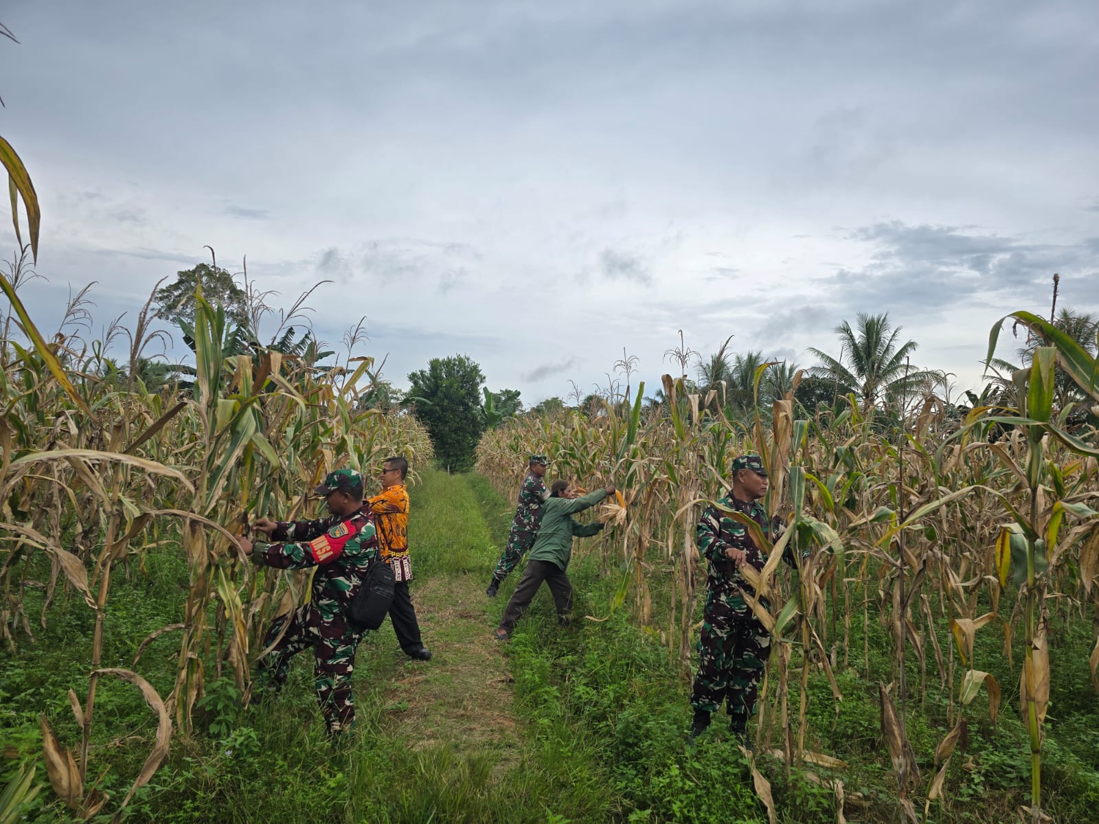 Dukung Program Ketahanan Pangan, Babinsa Koramil 1710-02/Timika Bantu Warganya Dalam Memanen Jagung