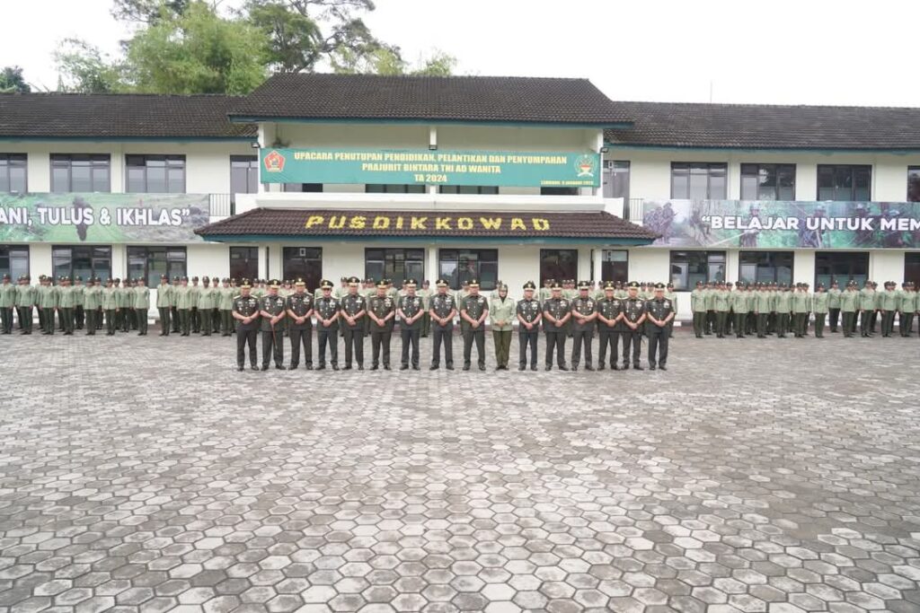LEMBANG, CARIBERITA – Komandan Kodiklatad Letjen TNI Mohamad Hasan selaku Inspektur Upacara (Irup) memimpin Upacara Penutupan Pendidikan, Pelantikan dan Penyumpahan Prajurit Bintara TNI AD Wanita TA 2024 bertempat di Lapangan Srikandi II Pusdikkowad Kodiklatad. Kamis (9/1/2025)