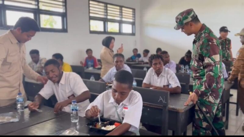 DEKAI, CARIBERITA – Dalam upaya meningkatkan gizi siswa sekolah dan menanggulangi masalah gizi di wilayahnya, Dandim 1715/Yahukimo Letkol Inf Tommy Yudistyo, S.Sos.,M.Han. bersama Wakil Bupati Yahukimo Essau Miram, Kapolres Yahukimo serta Forkopimda Kabupaten Yahukimo, dan SPPG (Satuan Pelayanan Pemenuhan Gizi) dari BGN (Badan Gizi Nasional) resmi meluncurkan program Makan Bergizi Gratis di SMKN 1 Dekai. Senin, 13/01/25.