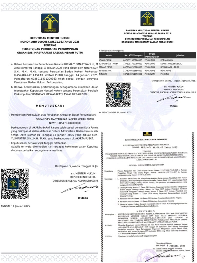 Jum’at Tertanggal 17 Januari 2025 Pernyataan Resmi Ketua Umum Mengenai Terbitnya AHU Perkumpulan Organisasi