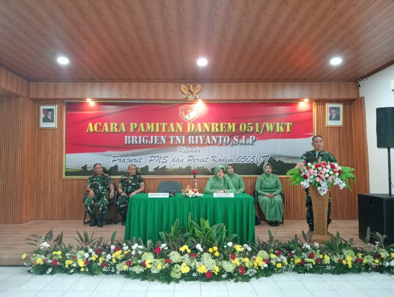 “Kemudian saya secara pribadi dan keluarga mungkin nanti tidak ketemu lagi pada kesempatan menjadi Danrem, artinya saya sudah berpamitan, saya mohon doa restu dari seluruh anggota Kodim 0505/JT”, tambahnya.