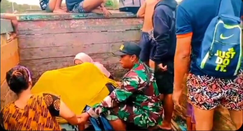 MEMPAWAH, CARIBERITA – Babinsa Koramil 1201-03/Mempawah Hilir, Kodim 1201/Mempawah Sertu Amirudin bersama warga Dusun Suap, Desa Pasir, Kecamatan Mempawah Hilir membantu evakuasi ibu hamil Nila yang akhirnya melahirkan dalam perjalanan menuju RS.Rubini, Jumat (31/1/2025).