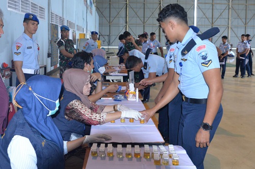 Pelaksanaan tes urine dihadiri langsung oleh Koordinator Bidang Pencegahan dan Pemberdayaan Masyarakat BNNP Sulsel, Ishak Iskandar, SKM, M, Kes., Dansatpom Lanud Sultan Hasanuddin Letkol Pom Dicky Milano dan Kepala Intelijen Lanud Sultan Hasanuddin, Mayor Sus Toni Admaja. (Pen Hnd)