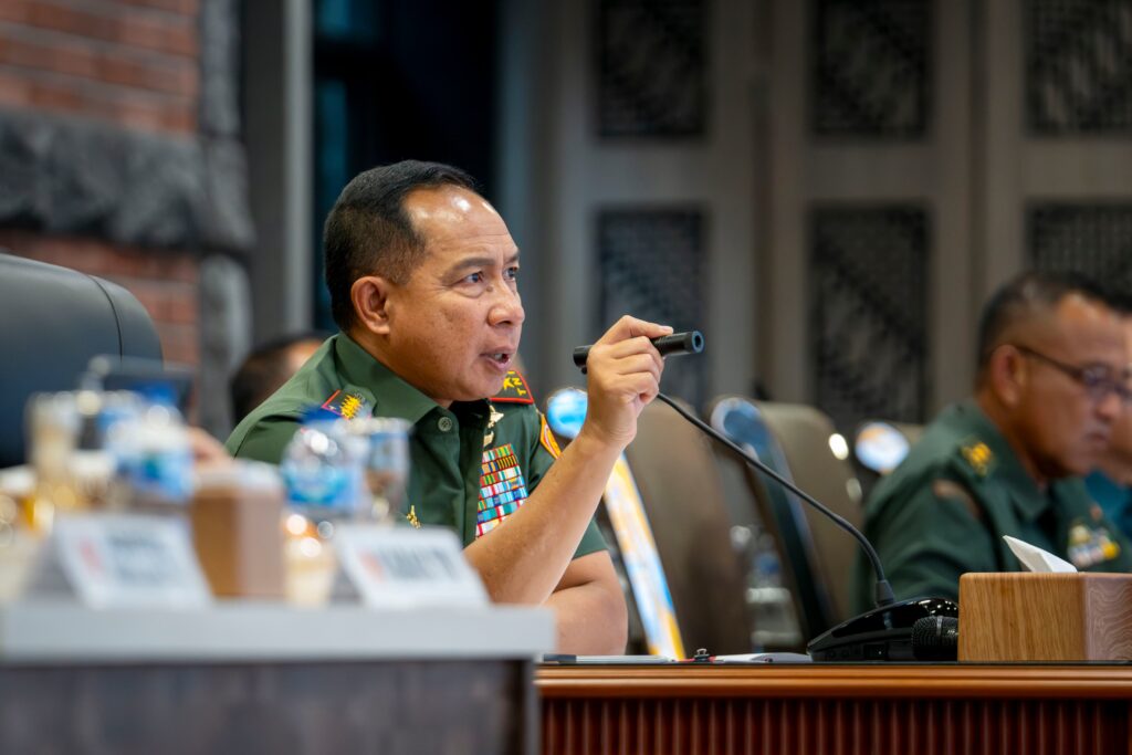 JAKARTA CARIBERITA – Panglima TNI Jenderal TNI Agus Subiyanto memimpin rapat terbatas melalui Video Conference terkait perkembangan situasi dan kondisi serta meyakinkan keamanan prajurit TNI pasca peningkatan eskalasi kekerasan di Republik Demokratik Kongo, bertempat di kantor Subden Merdeka Barat, Jakarta Pusat. Senin (3/2/2025).