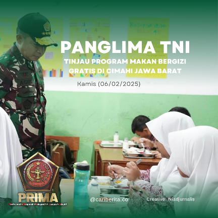 CIMAHI, CARIBERITA – Panglima TNI Jenderal TNI Agus Subiyanto melaksanakan peninjauan langsung program pemberian Makan Bergizi Gratis (MBG) kepada para siswa Sekolah Dasar Negeri (SDN) Pasirkaliki Mandiri 2, Kota Cimahi, Jawa Barat, Kamis (06/02/2025).