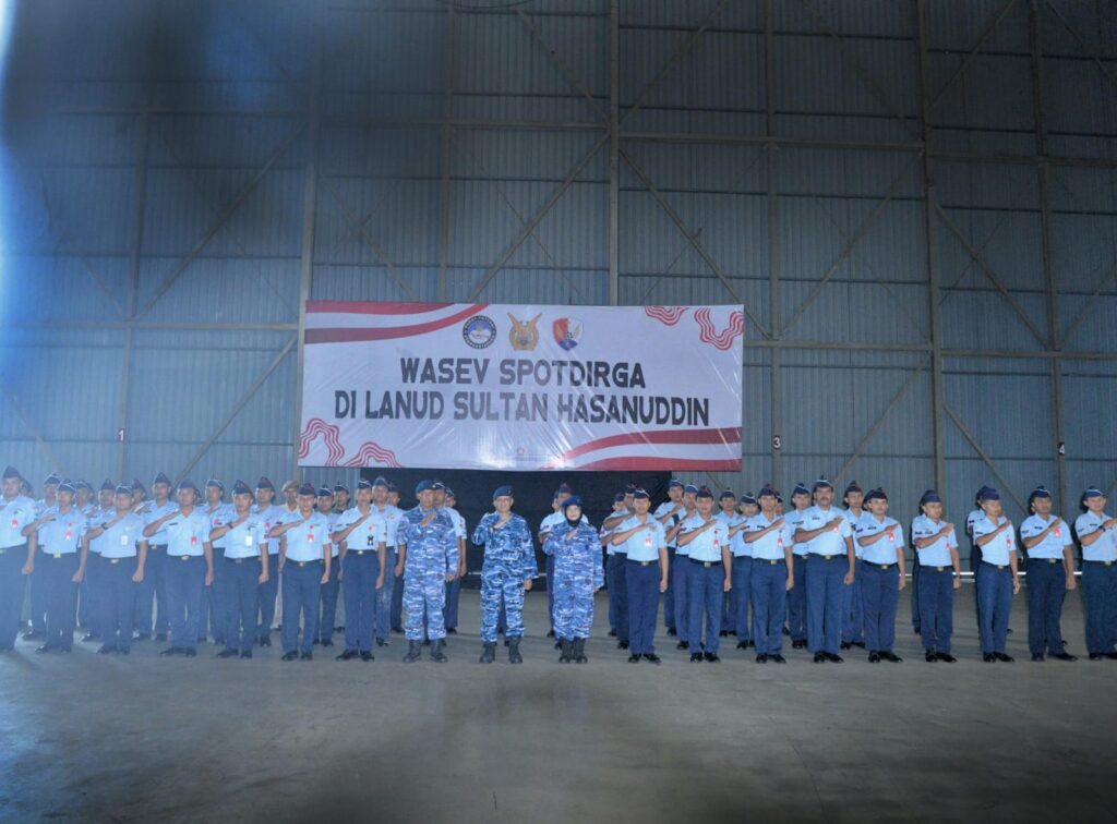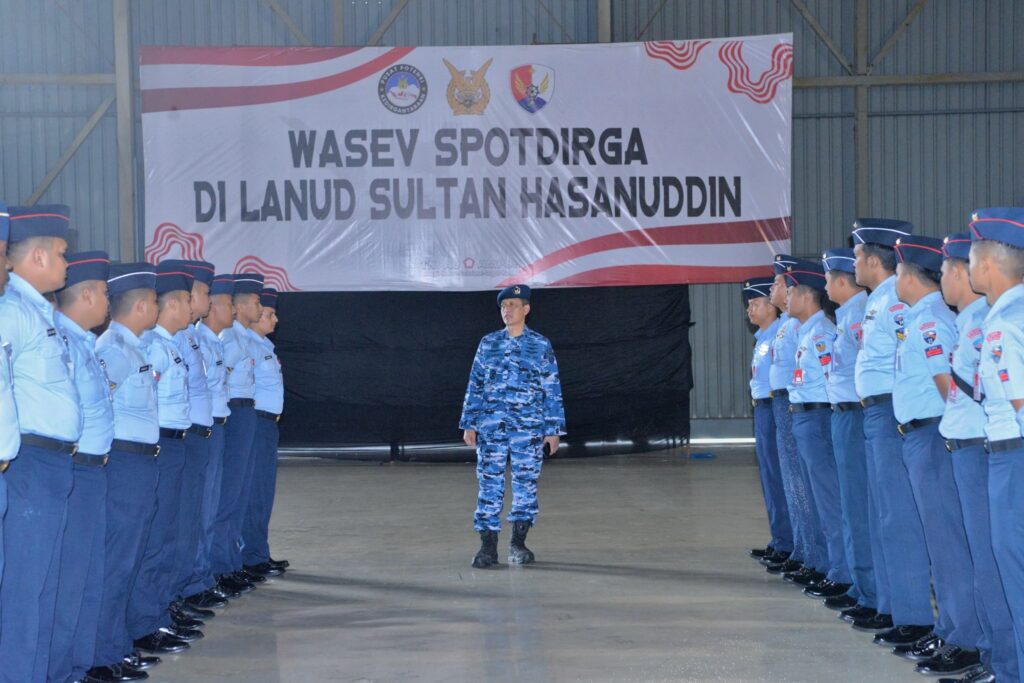 MAKASSAR, CARIBERITA – Personel Lanud Sultan Hasanuddin mengikuti Sosialisasi serta Pengawasan dan Evaluasi (Wasev) Staf Potensi Dirgantara (Spotdirga) Mabesau di Lanud Sultan Hasanuddin, bertempat di Hanggar Skadron Udara 5 Lanud Sultan Hasanuddin, Maros, Senin (10/2/2025).