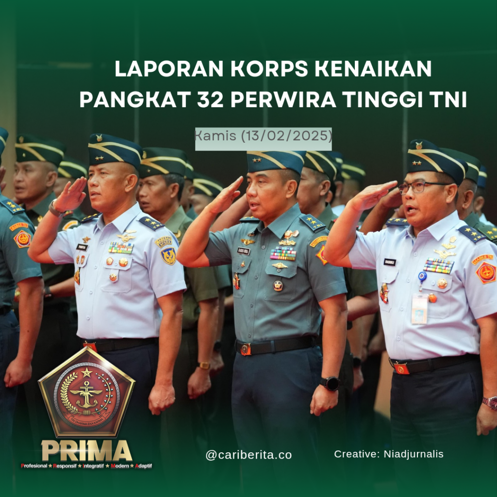 Kenaikan pangkat 32 Pati TNI tersebut berdasarkan Surat Perintah Panglima TNI Nomor Sprin /230/II/2025 tanggal 7 Februari 2025 dengan rincian 18 Pati TNI AD, 2 Pati TNI AL dan 12 Pati TNI AU.