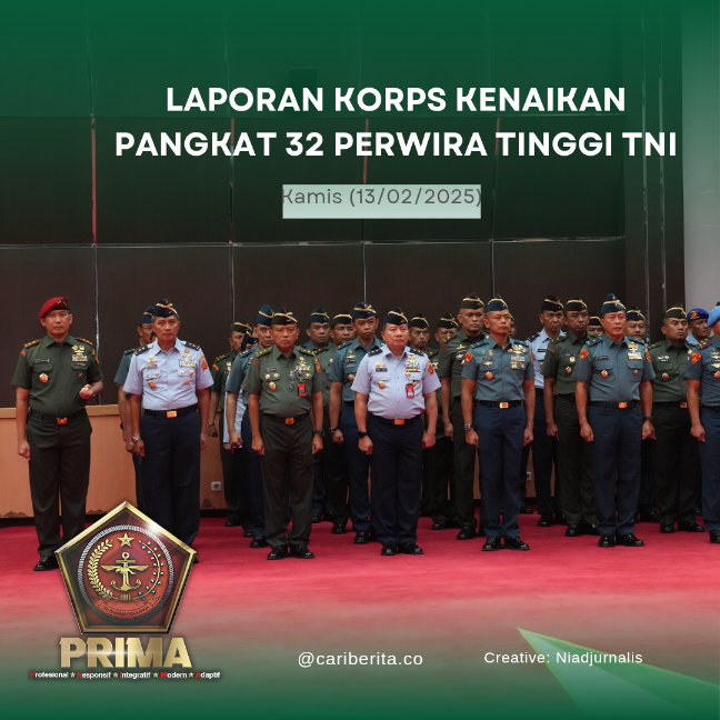 Kenaikan pangkat 32 Pati TNI tersebut berdasarkan Surat Perintah Panglima TNI Nomor Sprin /230/II/2025 tanggal 7 Februari 2025 dengan rincian 18 Pati TNI AD, 2 Pati TNI AL dan 12 Pati TNI AU.