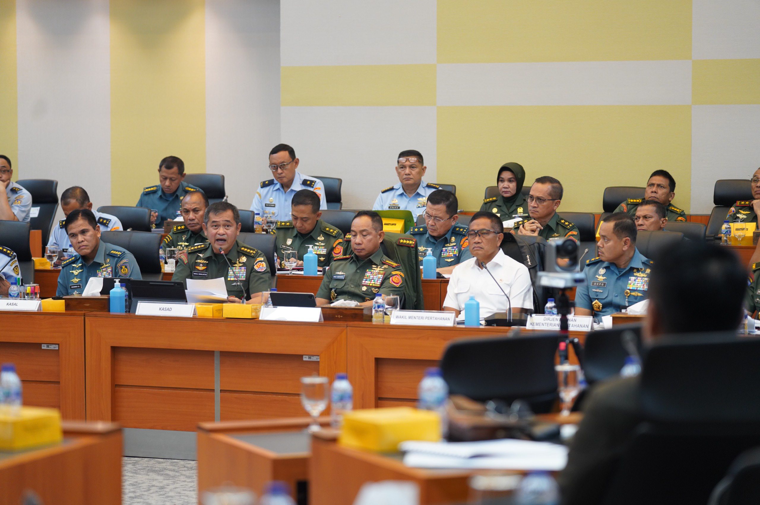 JAKARTA CARIBERITA – Panglima TNI Jenderal TNI Agus Subiyanto mendampingi Wakil Menteri pertahanan (Wamenhan) RI Marsekal Madya TNI (Purn) Donny Ermawan menghadiri rapat kerja dengan Komisi I DPR RI tentang efisiensi anggaran Kementerian Pertahanan (Kemhan) dan Tentara Nasional Indonesia, bertempat di Ruang Rapat Banggar DPR RI, Jakarta Pusat, Kamis (13/02/2025).