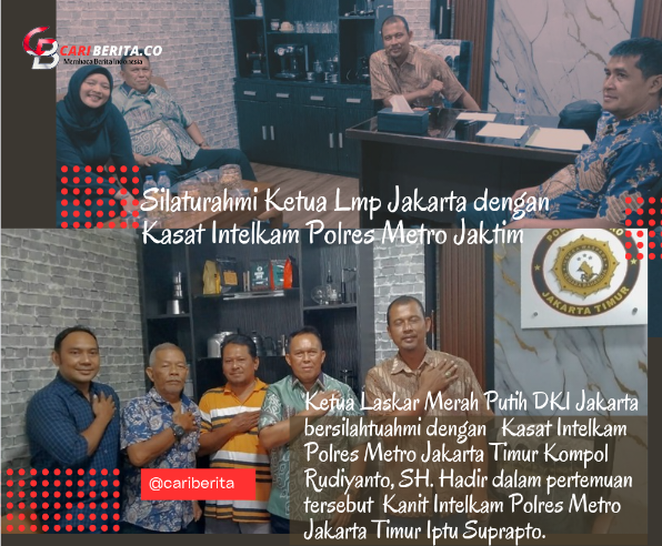 JAKARTA, CARIBERITA – Ketua Laskar Merah Putih DKI Jakarta bersilahtuahmi dengan Kasat Intelkam Polres Metro Jakarta Timur Kompol Rudiyanto, SH. Hadir dalam pertemuan tersebut Kanit Intelkam Polres Metro Jakarta Timur Iptu Suprapto.