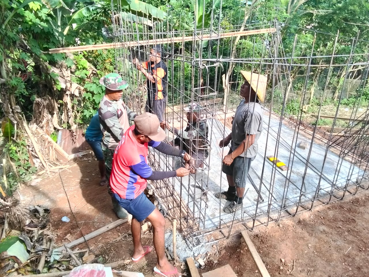 Kegiatan di pimpin Lettu Inf Kasdam dikuti personel Satgas TMMD dibantu warga masyarakat tersebut dengan semangatnya mencampur adukkan semen.