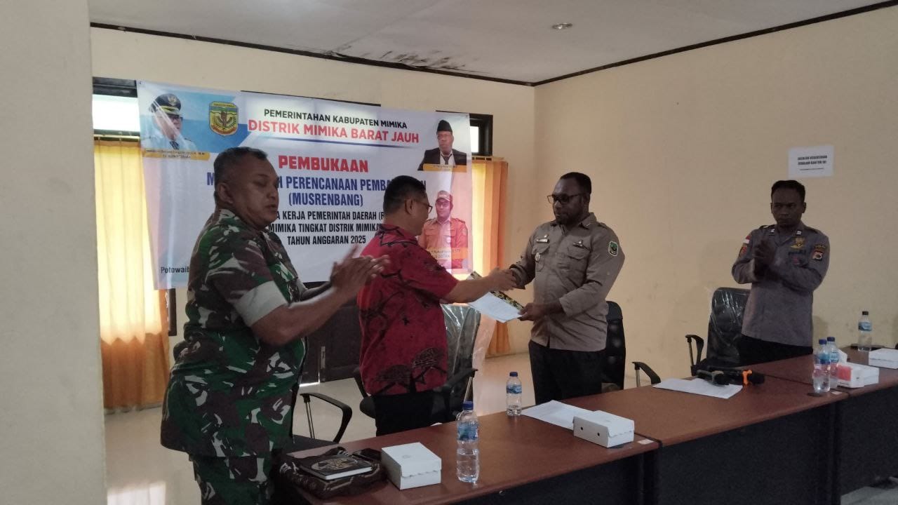 Hal tersebut dilakukan agar rencana pembangunan di wilayah akan senantiasa selaras dengan aspirasi masyarakat. Kegiatan Musrenbang ini dilaksanakan di Kantor Distrik Mimika Barat Jauh, Kabupaten Mimika, dipimpin Tim Asistensi Bapeda Mimika dan juga dihadiri Kadistrik Mimika Barat Jauh serta para kepala kampung se-Distrik Mimika Barat Jauh.