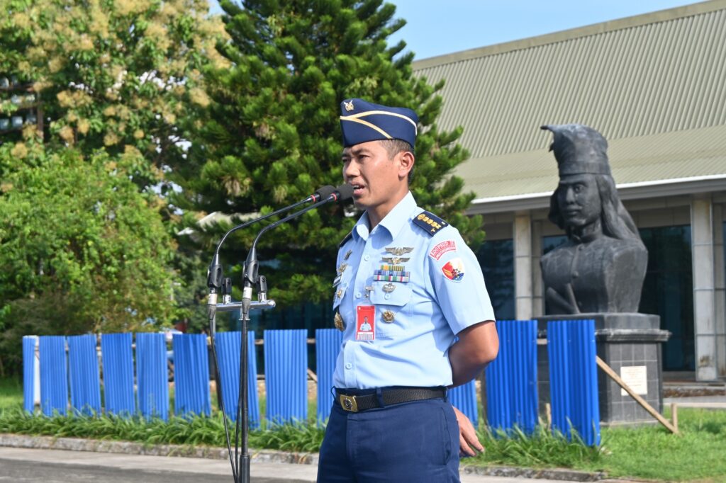 MAKASSAR CARIBERITA – Kepala Dinas Logistik (Kadislog) Lanud Sultan Hasanuddin, Kolonel Tek Luqman Hakim, S. Pd.I., M.Int.Sy., memimpin upacara bendera mingguan diawal bulan suci Ramadhan yang diikuti seluruh personel mulai dari para Kepala Dinas, Komandan Satuan, para Perwira, Bintara, Tamtama dan Pegawai Negeri Sipil (PNS) Lanud Sultan Hasanuddin, bertempat di Apron Galaktika Lanud Sultan Hasanuddin, Makassar, Senin (3/3/2025).