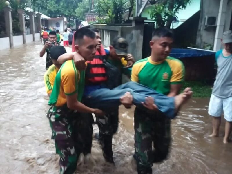 DEPOK CARIBERITA– Prajurit Batalyon Kavaleri 1/Badak Ceta Cakti Divif 1 Kostrad dengan sigap melaksanakan evakuasi warga terdampak banjir di Jl. Bukit Pasir, Kelurahan Pasir Gunung Selatan, Kecamatan Cimanggis, Kota Depok. Selasa (4/03/2025).