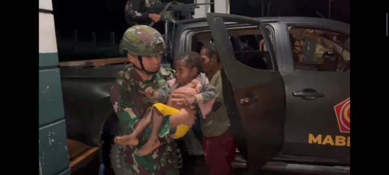 PUNCAK JAYA CARIBERITA – Satgas Yonif 715/Mtl berhasil melaksanakan evakuasi terhadap anak bernama Otion Enumbi (3) yang berada di pelosok Papua, bermula saat Otinus Enumbi (39) melaporkan ke Pos Ramil Yambi bahwa anaknya sakit dan lemas sudah 3 hari, Jumat (14/03/2025).