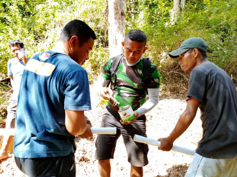 Semangat gotong royong Satgas TMMD bersama warga begitu kompak berupaya menyelesaikan pemasangan instalasi pipa.Komandan Satuan Setingkat Kompi (Dan SSK) Lettu Inf Kasdam menjelaskan pemasangan pipa ini menjadi bagian penting dalam mendukung kesejahteraan warga.