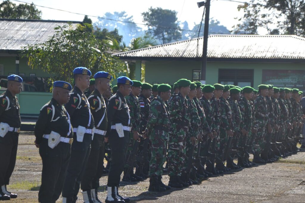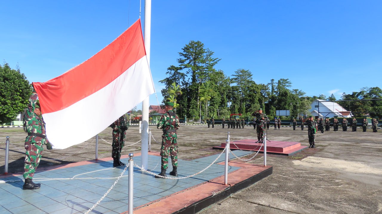 TIMIKA, CARIBERITA – Dandim 1710/Mimika Letkol Inf M. Slamet Wijaya, S. Sos,. M. Han,. M.A memimpin langsung jalannya upacara Bendera 17-an di Makodim 1710/Mimika Jl. Agimuga Mile 32. Distrik Kuala Kencana, Kab. Mimika, Senin (17/03/2025).