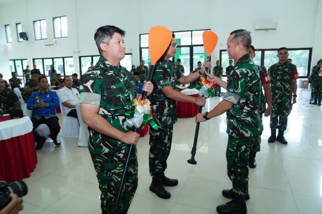 KOTA BEKASI, CARIBERITA – Asisten Logistik (Aslog) Panglima TNI Mayjen TNI Candra Wijaya mewakili Panglima TNI Jenderal TNI Agus Subiyanto menyerahkan secara simbolis Alat Angkut Air Boat Polyetylene bantuan Panglima TNI dalam rangka Tanggap Penanggulangan Bencana Alam Banjir kepada Kepala Staf Kodim 0507/Kota Bekasi Letkol Czi Erlangga Perdana Gassing dan Komandan Kodim 0509/Kab. Bekasi Letkol Inf Danang Waluyo, bertempat di Aula Babinsa Makodim 0509/Kab. Bekasi, Jl. Boulevard Raya, Sukamahi, Cikarang Pusat, Kab. Bekasi, Jawa Barat, Senin (17/3/2025).
