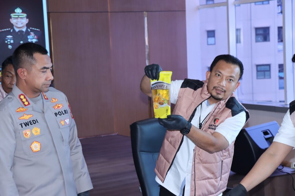 JAKARTA CARIBERITA – Jajaran Satgas Pangan Satuan Reserse Kriminal Polres Metro Jakarta Barat berhasil mengungkap kasus peredaran Minyakkita yang tidak sesuai takaran. Dalam pengungkapan yang dipimpin langsung oleh kasat reskrim polres metro jakarta barat Akbp Arfan Zulkan Sipayung, sebanyak 1.600 karton dengan total 19.200 kemasan Minyakkita berhasil disita oleh polisi.