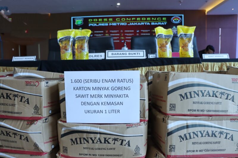 JAKARTA CARIBERITA – Jajaran Satgas Pangan Satuan Reserse Kriminal Polres Metro Jakarta Barat berhasil mengungkap kasus peredaran Minyakkita yang tidak sesuai takaran. Dalam pengungkapan yang dipimpin langsung oleh kasat reskrim polres metro jakarta barat Akbp Arfan Zulkan Sipayung, sebanyak 1.600 karton dengan total 19.200 kemasan Minyakkita berhasil disita oleh polisi.
