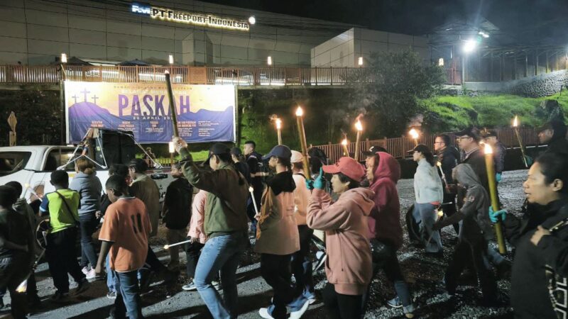 Pawai Obor Fajar Paskah 2025 menjadi simbol perayaan iman sekaligus ajakan untuk hidup rukun dan damai antar umat beragama di Kabupaten Mimika.