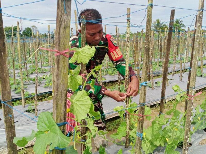 Babinsa Koramil 02/Timika Komsos Serta Bantu Petani Rawat Tanaman Melon