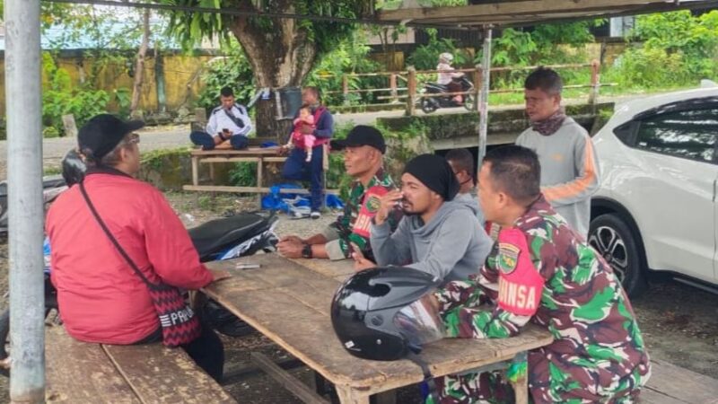 TIMIKA, CARIBERITA – Babinsa Koramil 02/Timika Kodim 1710/Mimika, Serma Wawan Setiawan dan Serda Samsudin melaksanakan Komunikasi Sosial (Komsos) bersama tukang ojek di Kelurahan Kwamki Baru, Distrik Mimika Baru, Jumat (25/4/2025).