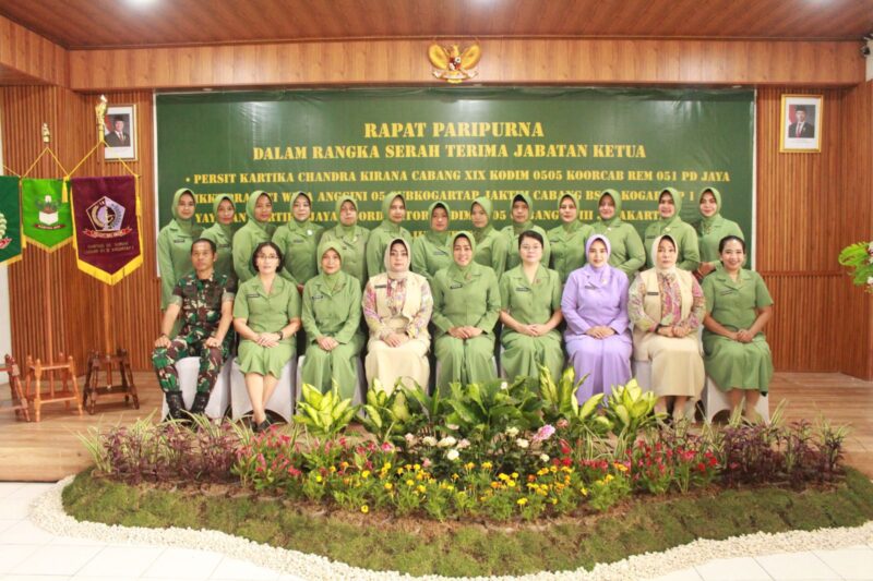 JAKARTA CARIBERITA – Persit KCK Cabang XIX Kodim 0505/JT menggelar Rapat Paripurna dalam rangka Serah Terima Jabatan Ketua Persit KCK Cabang XIX Kodim 0505/JT Koorcab Rem 051 PD Jaya bertempat di Aula Makodim, Rapat Paripurna dipimpin Ketua Persit KCK Cabang XIX Kodim 0505/JT Ny. Rini Suyikno, Kamis (01/05/25).