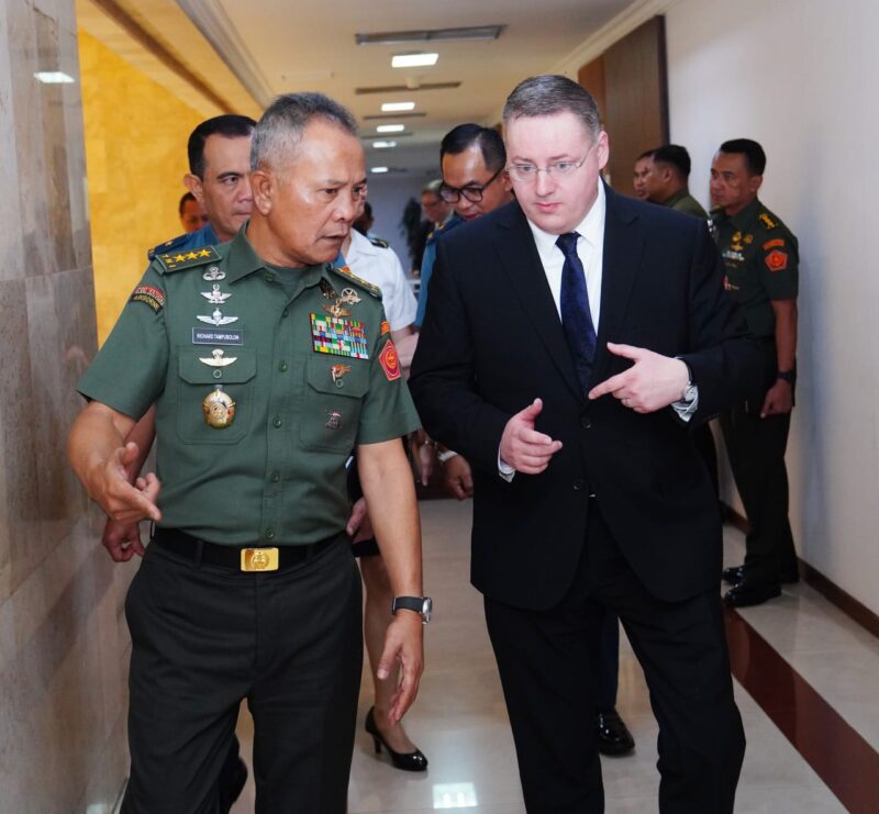 JAKARTA CARIBERITA – Kepala Staf Umum (Kasum) TNI Letjen TNI Richard Tampubolon, S.H., M.M., menerima Courtesy Call (CC) Deputy Assistant To Secretary Of Defence (DASD), Dr. Andrew Byers bertempat di Mabes TNI, Cilangkap, Jakarta Timur, Selasa (6/05/2025).