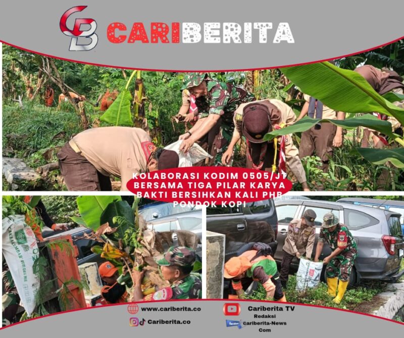 JAKARTA CARIBERITA – Manunggal TNI bersama rakyat menggelar Karya Bakti TNI, untuk pembersihan Kali PHB Pondok Kopi RT.03/11 Pondok Kopi, Jum’at (16/05/2025).