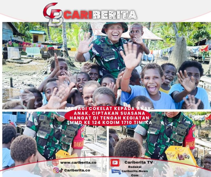 TIMIKA, CARIBERITA – Di sela-sela kesibukan pelaksanaan program TNI Manunggal Membangun Desa (TMMD) Ke-124, Komandan Satuan Tugas (Dansatgas) Letkol Inf M. Slamet Wijaya, S. Sos., M. Han., M.A. menunjukkan kepeduliannya terhadap warga sekitar dengan membagikan cokelat kepada anak-anak di lokasi kegiatan pembangunan, Jumat (16/5/2025).