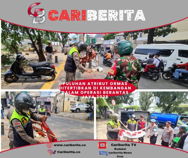 JAKARTA CARIBERITA – Sebanyak 52 atribut dan bendera milik berbagai organisasi kemasyarakatan (ormas) ditertibkan oleh unsur tiga pilar Kecamatan Kembangan, Jakarta Barat, dalam rangkaian Operasi Berantas Jaya 2025, Kamis (15/5/2025).