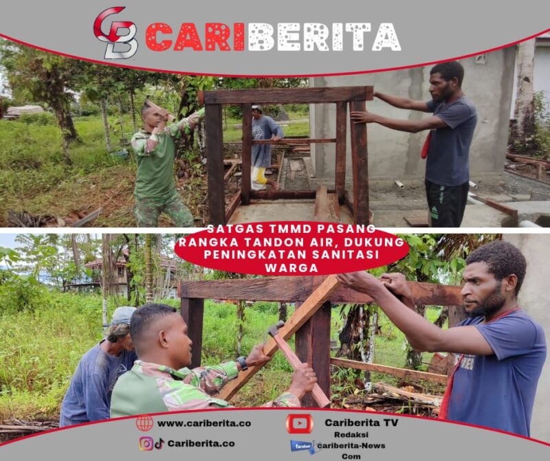 TIMIKA, CARIBERITA – Satuan Tugas TNI Manunggal Membangun Desa (TMMD) terus menunjukkan komitmennya dalam meningkatkan kesejahteraan masyarakat pedesaan. Salah satu kegiatan yang tengah dilaksanakan adalah pemasangan rangka tandon air untuk sasaran MCK di Kampung Iwaka, Distrik Iwaka, Kab. Mimika. Sabtu (17/5/2025).