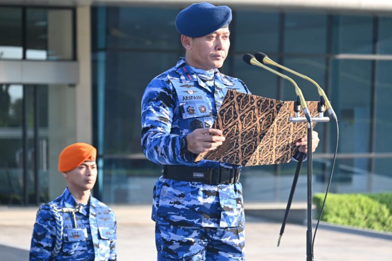 MAKASSAR CARIBERITA – Komandan Lanud Sultan Hasanuddin, Marsma TNI Arifaini Nur Dwiyanto M. Han., memimpin upacara bendera 17-an, yang diikuti seluruh personel mulai dari para Kepala Dinas, Danwing II Kopasgat, Komandan Satuan, para Perwira, Bintara, Tamtama dan Pegawai Negri Sipil (PNS) Lanud Sultan Hasanuddin, bertempat di Apron Baseops, Lanud Sultan Hasanuddin, Makassar, Senin (19/5/2025).