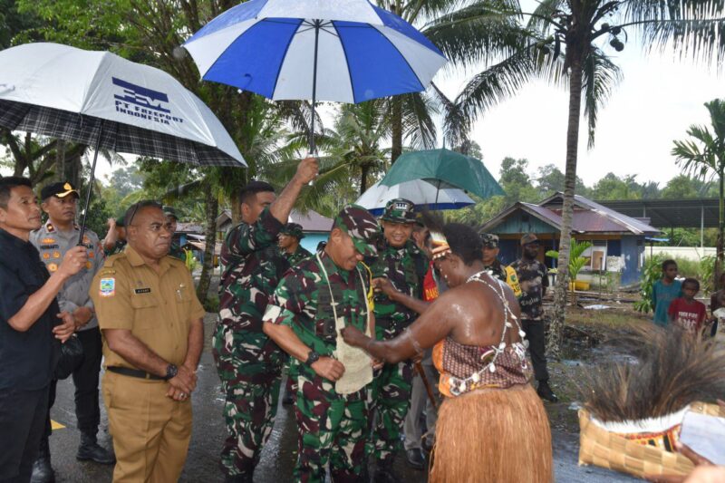 Kunjungan Tim Wasev bertujuan mengecek kemajuan fisik, serta memastikan manfaat program benar‑benar dirasakan masyarakat.Kegiatan diawali paparan Dansatgas TMMD Letkol Inf M. Slamet Wijaya, S. Sos., M. Han., M.A. di Makodim 1710/Mimika dilanjutkan peninjauan ke lokasi sasaran TMMD. Saat tiba di Kampung Pigapu, Tim Wasev yang didampingi Dansatgas TMMD ke-124 disambut dengan tradisi pengalungan Noken dan tarian adat dari suku Kamoro oleh warga Kampung Pigapu.