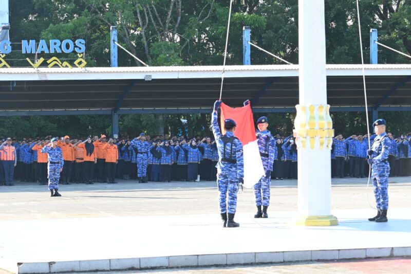 MAKASSAR, CARIBERITA -Komandan Lanud (Danlanud) Sultan Hasanuddin Marsma TNI Arifaini Nur Dwiyanto, M.Han., memimpin upacara bendera Hari Kesadaran Nasional yang diikuti oleh Wakil Bupati Maros, Andi Muetazim Mansyur, S.T.,M.Si., dan jajaran Forum Koordinasi Pimpinan Daerah (Forkopimda) Kabupaten Maros serta personel TNI, Polri, Pegawai Negeri Sipil, bertempat di Lapangan Pallantikang Kantor Bupati Maros, Selasa (17/6/2025).