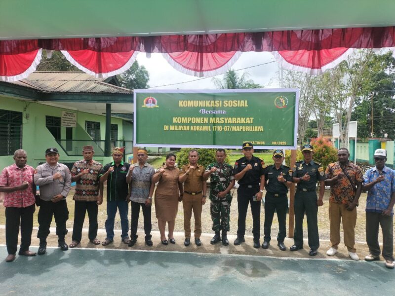 TIMIKA, CARIBERITA – Dalam rangka meningkatkan Kemanunggalan TNI dengan Rakyat serta memperkokoh hubungan baik yang telah terjalin selama ini, Koramil 1710-07/Mapurujaya, Kodim 1710/Mimika menggelar kegiatan Komunikasi Sosial (Komsos) bersama Komponen Masyarakat (Kommas) bertempat di Makoramil 1710-07/Mapurujaya, Distrik Mimika Timur, Kab. Mimika, Rabu (02/07/2025).