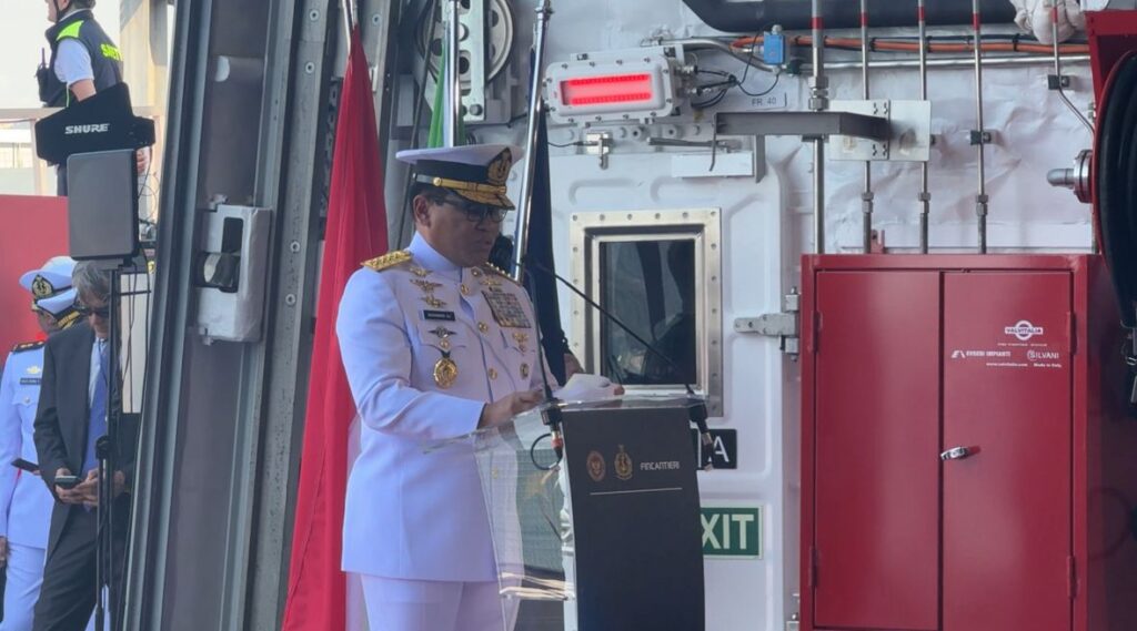 Dalam upacara tersebut, CEO Fincantieri menyampaikan sambutan dan menandatangani Berita Acara (BA) penyerahan kapal.