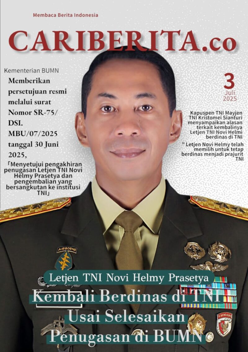 JAKARTA CARIBERITA – Tentara Nasional Indonesia (TNI) menyampaikan bahwa Letjen TNI Novi Helmy Prasetya akan kembali berdinas aktif di lingkungan TNI setelah menyelesaikan penugasan di luar struktur TNI.