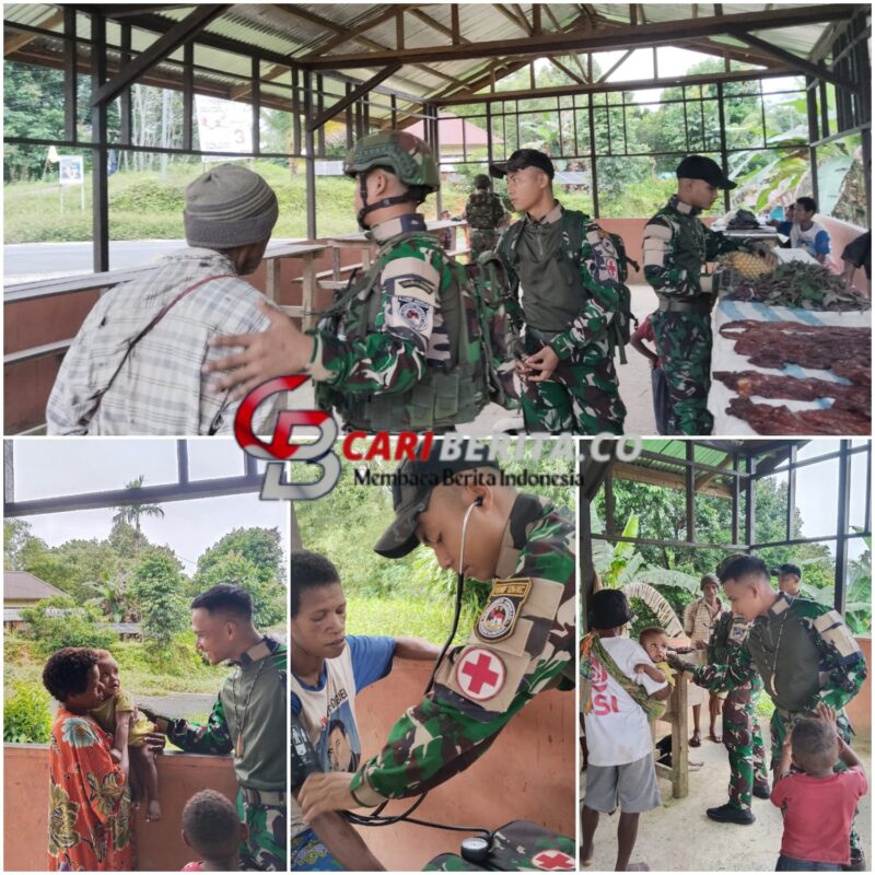 BOVEN DIGOEL, CARIBERITA – Dalam rangka meningkatkan kualitas hidup masyarakat perbatasan, Satgas Yonif 126/Kalacakti Pos Arimop melaksanakan kegiatan pelayanan kesehatan (yankes) gratis dan pembelian hasil buruan warga di pasar pagi Kampung Maju, Distrik Arimop, Kabupaten Boven Digoel, Papua Selatan, Jumat (18/7/2025).