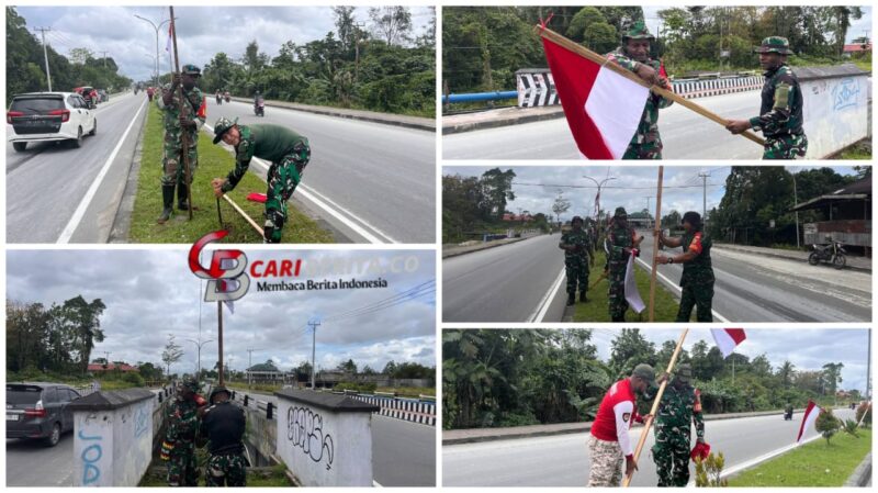 Sambut Bulan Kemerdekaan, Kodim 1710/Mimika Pasang Bendera Merah Putih Di Sepanjang Jalan
