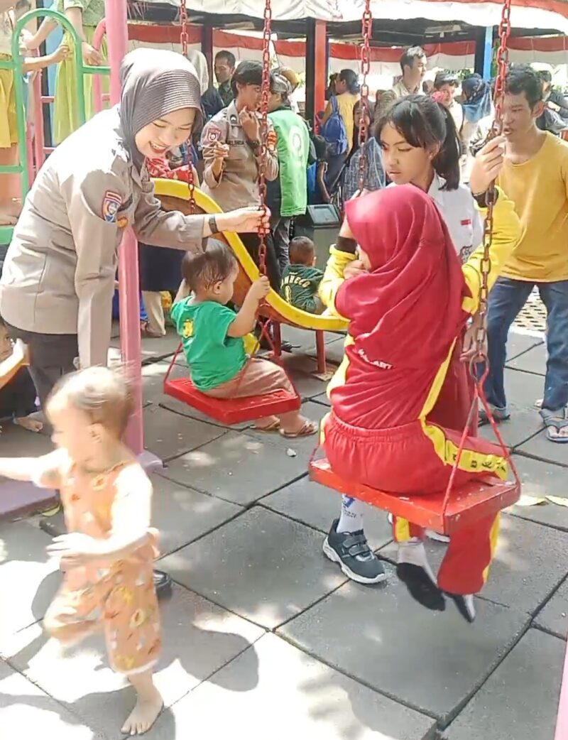 Terlihat Puluhan Polwan dan anggota Ditbinmas mengajak anak-anak bernyanyi, menari, dan melukis untuk memulihkan psikologi pascainsiden Demo anarkis kemarin.