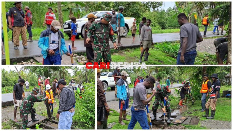 TIMIKA, CARIBERITA – Dalam upaya menjaga kebersihan lingkungan sekaligus mencegah terjadinya banjir saat musim hujan, Babinsa Koramil 1710-07/Mapurujaya, Sertu Yulius Nampe bersama warga melaksanakan kerja bakti membersihkan drainase di wilayah binaannya, di Kampung Tipuka, Distrik Mimika Timur, Selasa (09/09/2025).