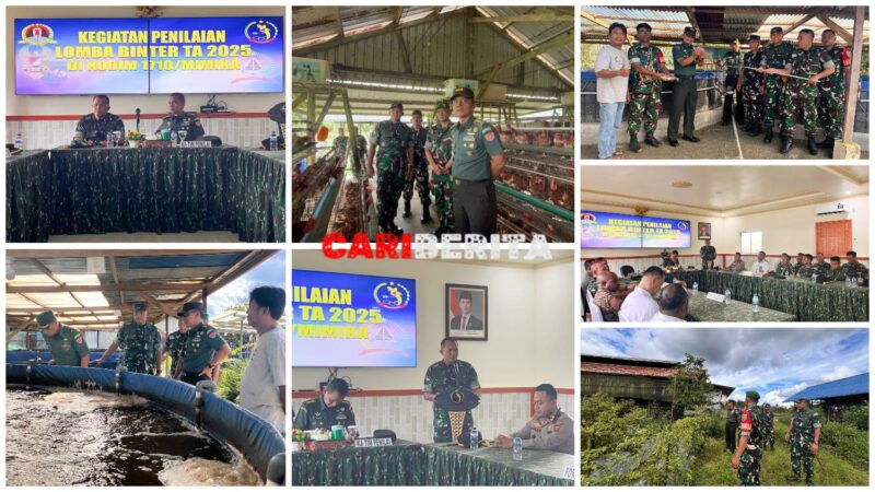 TIMIKA, CARIBERITA – Kodim 1710/Mimika, menerima kunjungan kerja Tim Penilaian Lomba Pembinaan Teritorial (Binter) Tahun Anggaran 2025 yang dipimpin oleh Kolonel Inf Suhartono, S.I.P., Kegiatan berlangsung pada Senin (8/9/2025) di Makodim 1710/Mimika, jalan Agimuga Mile 32, Kab. Mimika. Lomba Binter merupakan agenda tahunan TNI Angkatan Darat yang melibatkan seluruh Kodam untuk menilai dan memilih satuan Kodim terbaik sebagai perwakilan di tingkat nasional.